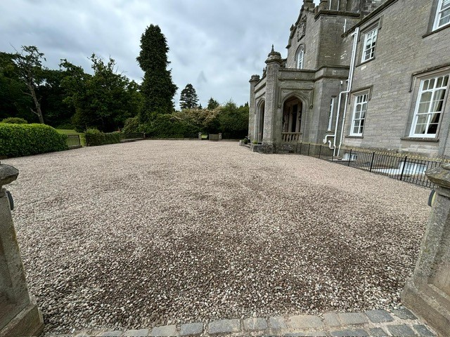 This job was a beautiful country mansion, built in circa 1830 but now converted into luxury apartments. The gravel car park and short gravel drive into the coach house has deteriorated over the past few years and we were tasked with giving it a new lease of life. It was bigger than it looked and took 60 tonnes of washed gravel, spread using our 5T excavator, to leave it looking like new! Happy residents and done with minimal disruption to their daily routine.